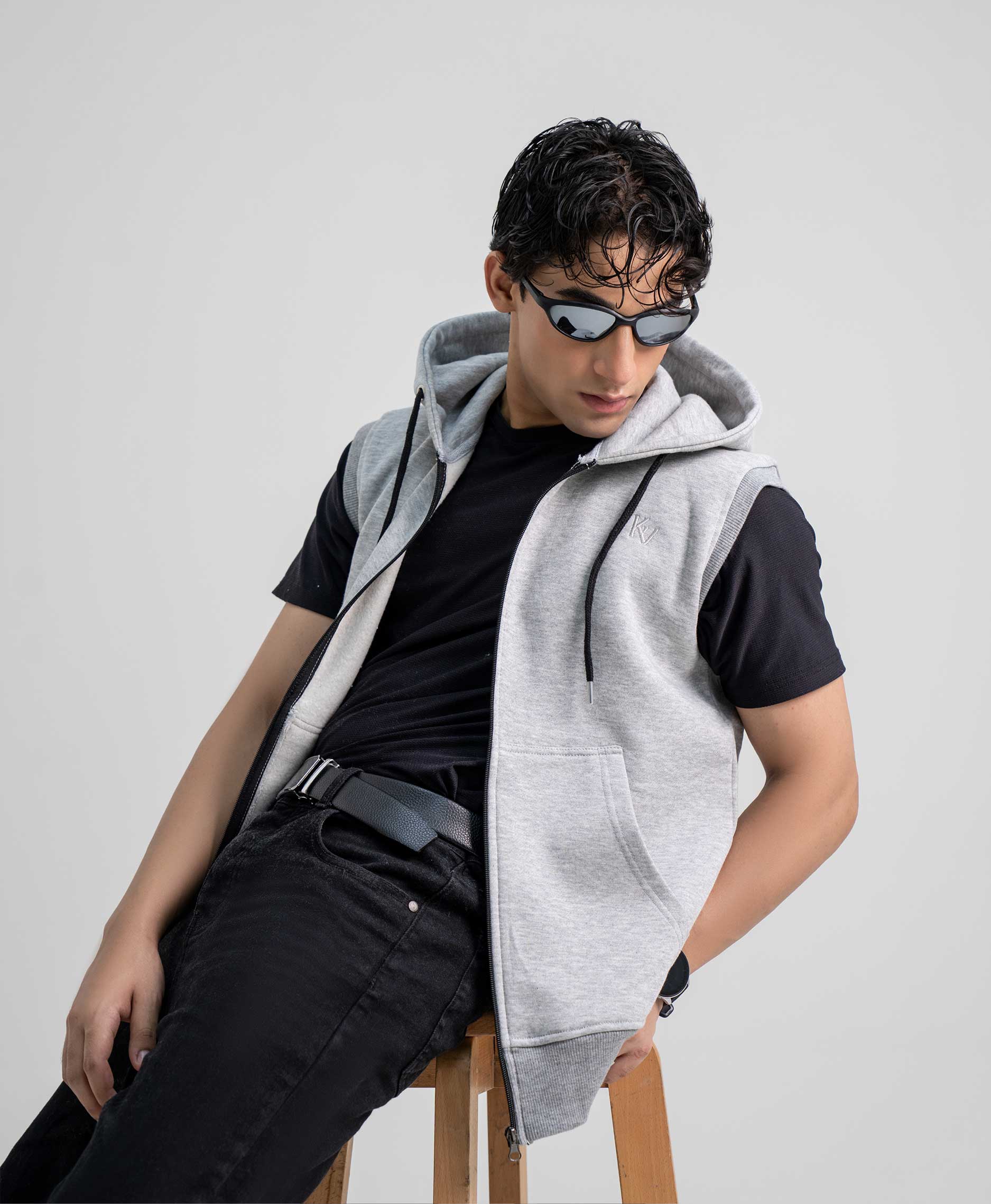 Grey Sleeveless Hoodie
